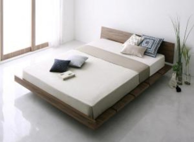 モダンデザインローベッド スタンダードボンネルコイルマットレス付き ワイドステージ ダブル フレーム幅180