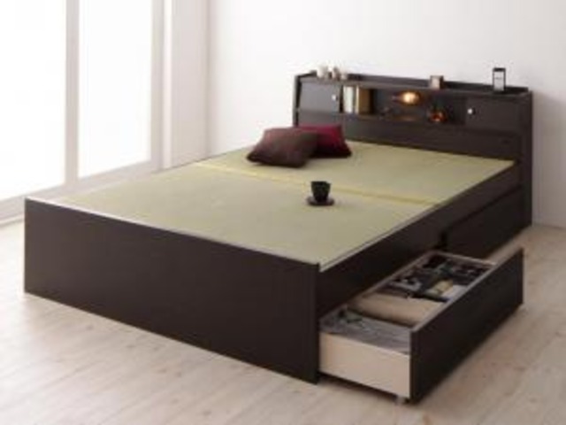高さが変えられる棚・照明・コンセント付き畳ベッド 泰然 たいぜん 引出2杯付 ダブル