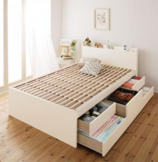 お客様組立 国産 多機能頑丈すのこチェストベッド ベッドフレームのみ セミダブル