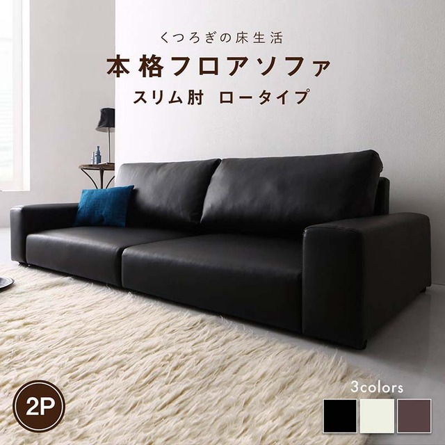 フロアソファ ソファ スリム肘 ロータイプ 2P