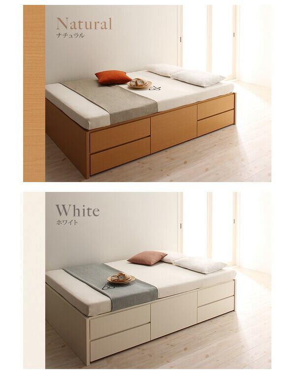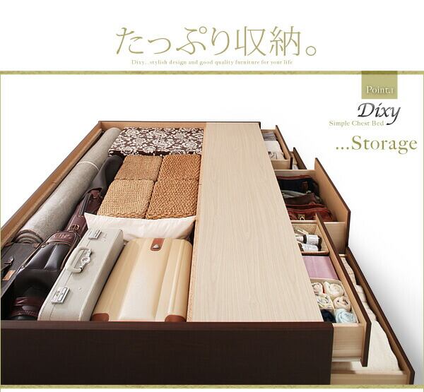 組立設置付 シンプルチェストベッド 薄型プレミアムポケットコイルマットレス付き シングル
