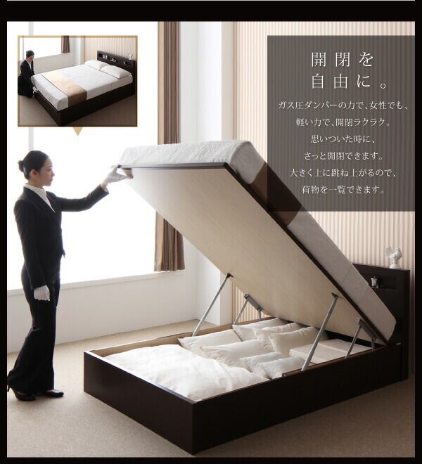 お客様組立 開閉タイプが選べる跳ね上げ収納ベッド 薄型スタンダードポケットコイルマットレス付き 縦開き シングル 深さレギュラー