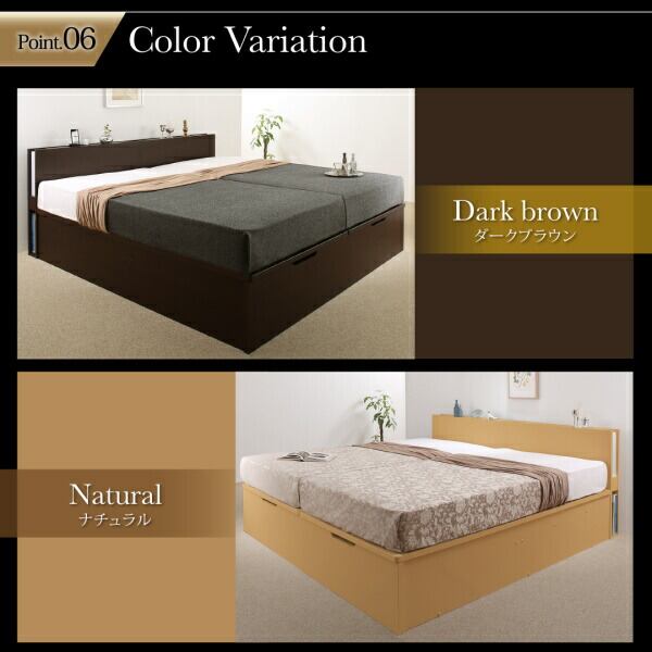 組立設置付 棚・照明・コンセント付国産大型跳ね上げ収納ベッド 薄型抗菌国産ポケットコイルマットレス付き 縦開き キング(SS+S)