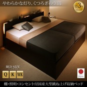 組立設置付 棚・照明・コンセント付国産大型跳ね上げ収納ベッド マルチラススーパースプリングマットレス付き 縦開き ワイドK200