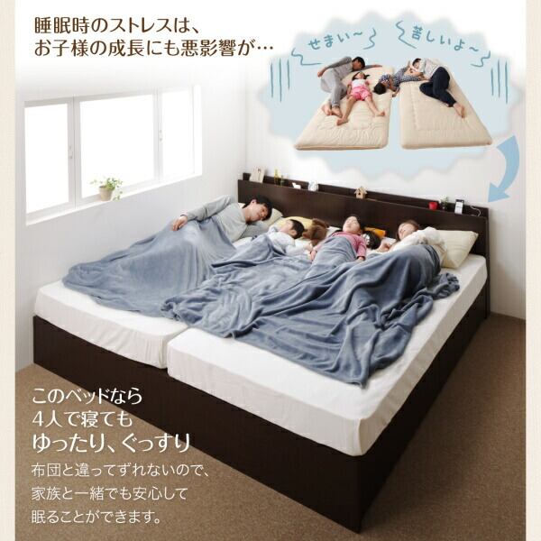 組立設置付 壁付けできる国産ファミリー連結収納ベッド 薄型抗菌国産ポケットコイルマットレス付き Aタイプ シングル
