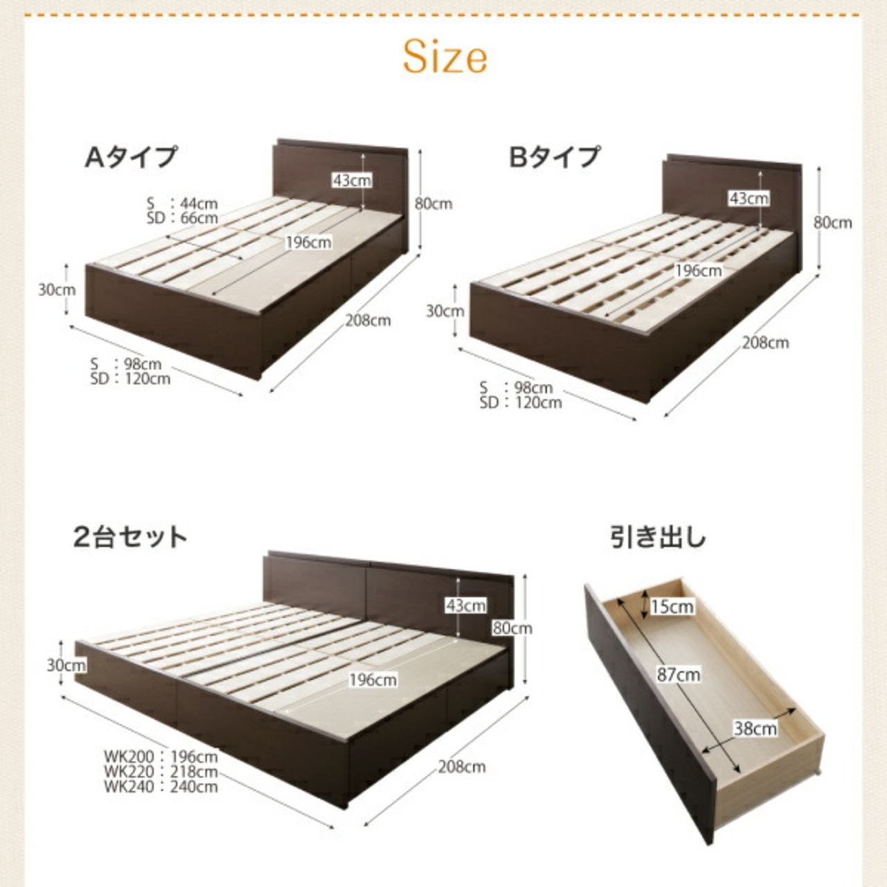 布団 ベッドフレームのみ A+Bタイプ ワイドK200 組立設置付