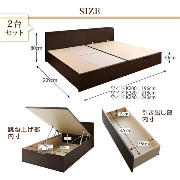 布団 ベッドフレームのみ A+Bタイプ ワイドK200 組立設置付