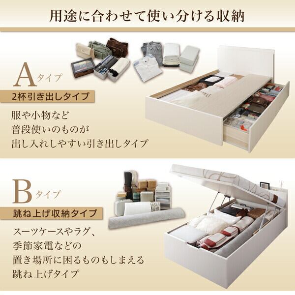 収納付きベッド シングルベッド セミダブルベッド 収納 収納付き スタンダードポケットコイルマットレス付き A+Bタイプ ワイドK240(SD×2) 組立設置付