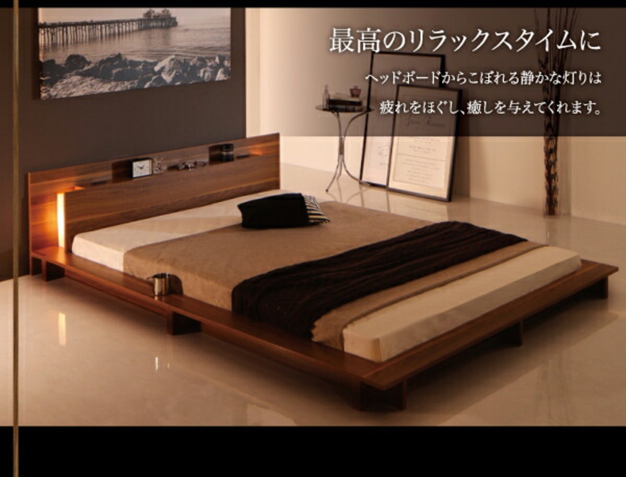 モダンライト・コンセント付きローベッド スタンダードボンネルコイルマットレス付き ダブル