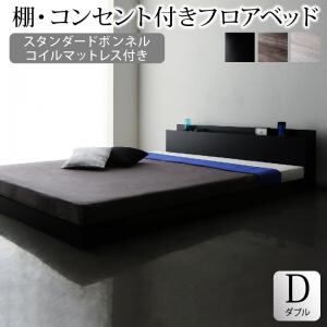 棚・コンセント付きフロアベッド スタンダードボンネルコイルマットレス付き ダブル 組立設置付