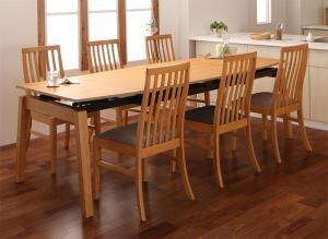 組立設置付き ハイバックチェア オーク材 スライド伸縮式ダイニング 7点セット(テーブル+チェア6脚) W140-240