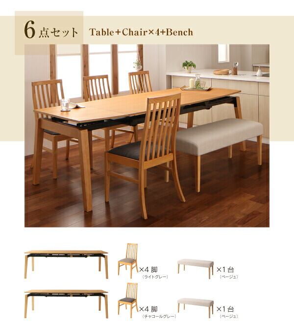 ダイニング7点セット(テーブル+チェア6脚) W140-240 組立設置付
