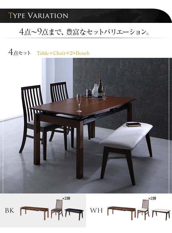 組立設置付き ハイバックチェア ウォールナット材 スライド伸縮式ダイニング 5点セット(テーブル+チェア4脚) W140-240