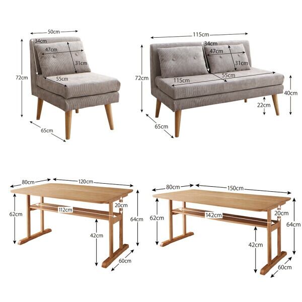ダイニング5点セット(テーブル+1Pソファ4脚) W150 組立設置付