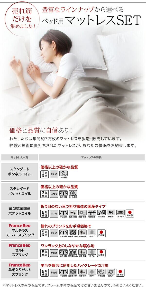 収納付きベッド シングルベッド セミダブルベッド 収納 収納付き スタンダードボンネルコイルマットレス付き A+Bタイプ ワイドK240(SD×2) 組立設置付