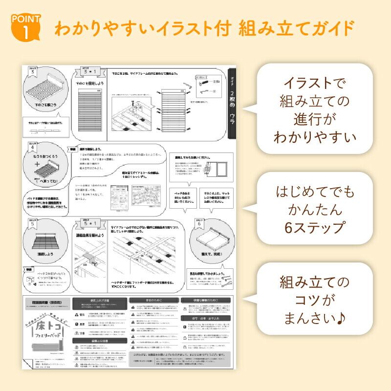 ベッド ロータイプ 連結 すのこ 天然木 ファミリーベッド 宮 コンセント すのこベッド ホテル マットレス付き シングル セミダブル WK220(S+SD) 組立設置付;ck120632500050850