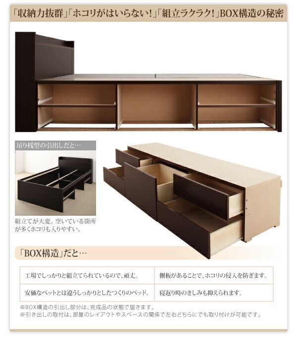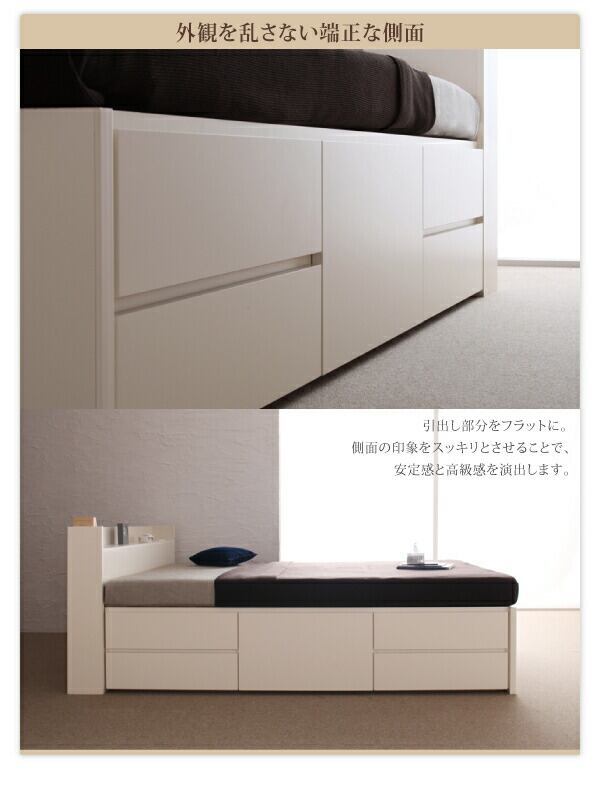 組立設置付 コンセント付きチェストベッド 薄型抗菌国産ポケットコイルマットレス付き シングル