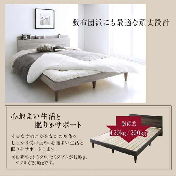 棚・コンセント付きデザインすのこベッド 国産カバーポケットコイルマットレス付き シングル 組立設置付
