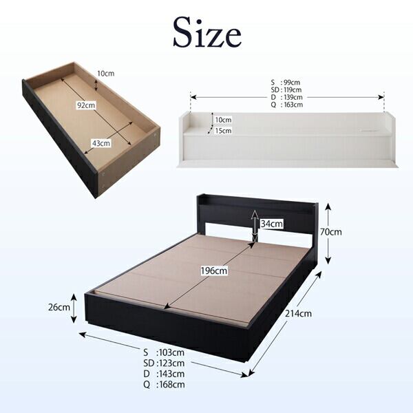棚・コンセント付収納ベッド スタンダードポケットコイルマットレス付き ダブル