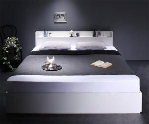 棚・コンセント付収納ベッド 国産カバーポケットコイルマットレス付き ダブル