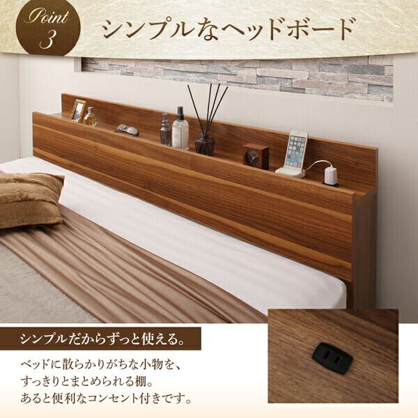 棚・コンセント付収納ベッド ベッドフレームのみ クイーン 組立設置付