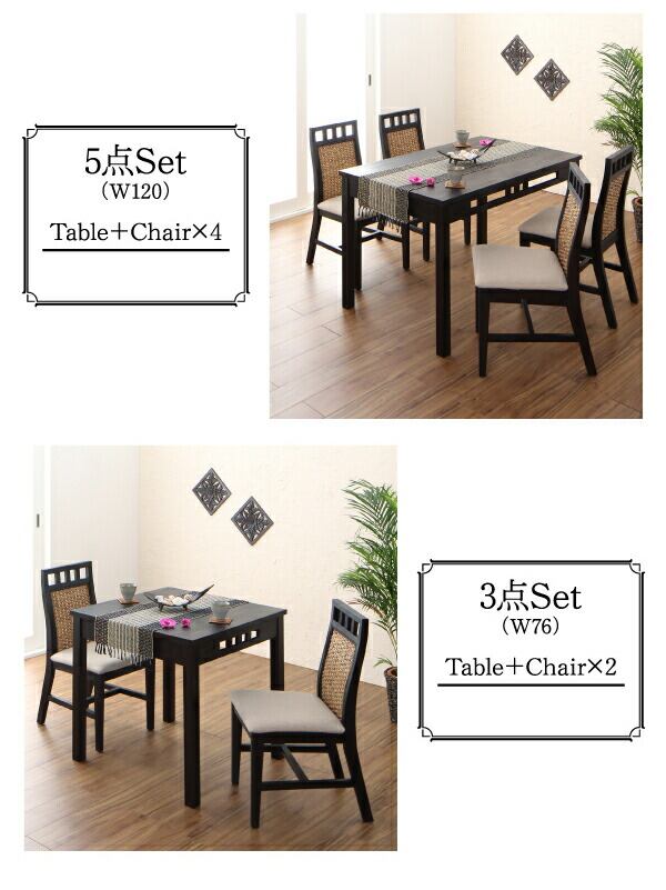 ダイニングセット アジアンモダンダイニングセット 4人 5点セット(テーブル+チェア4脚) W120