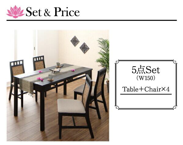 ダイニングセット アジアンモダンダイニングセット 4人 5点セット(テーブル+チェア4脚) W150
