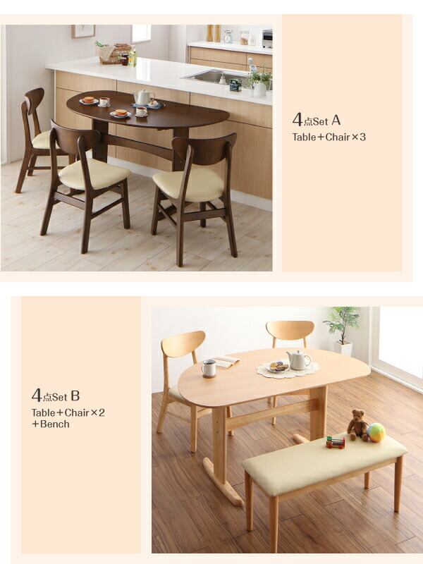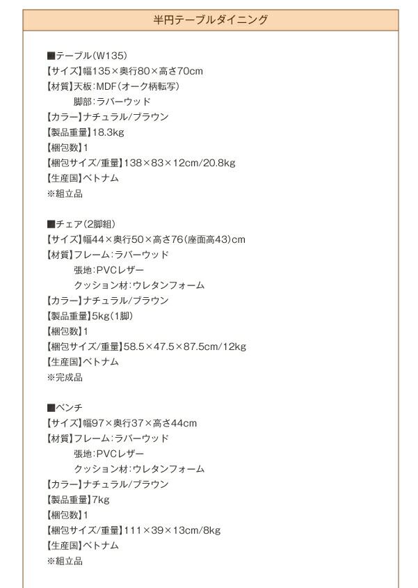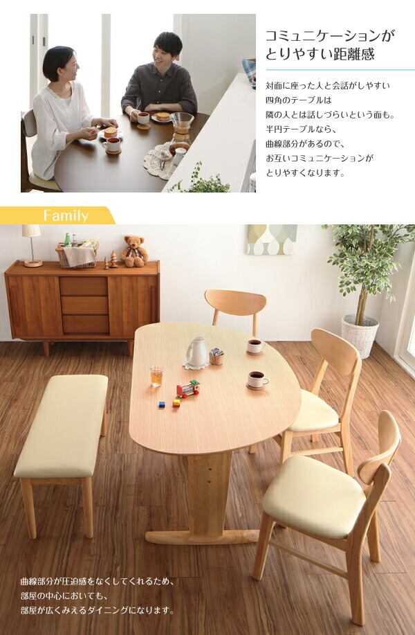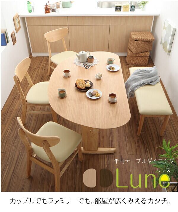 ダイニングセット(テーブル&ベンチ チェア) 半円テーブルダイニング 5人 5点セット(テーブル+チェア3脚+ベンチ1脚) W135