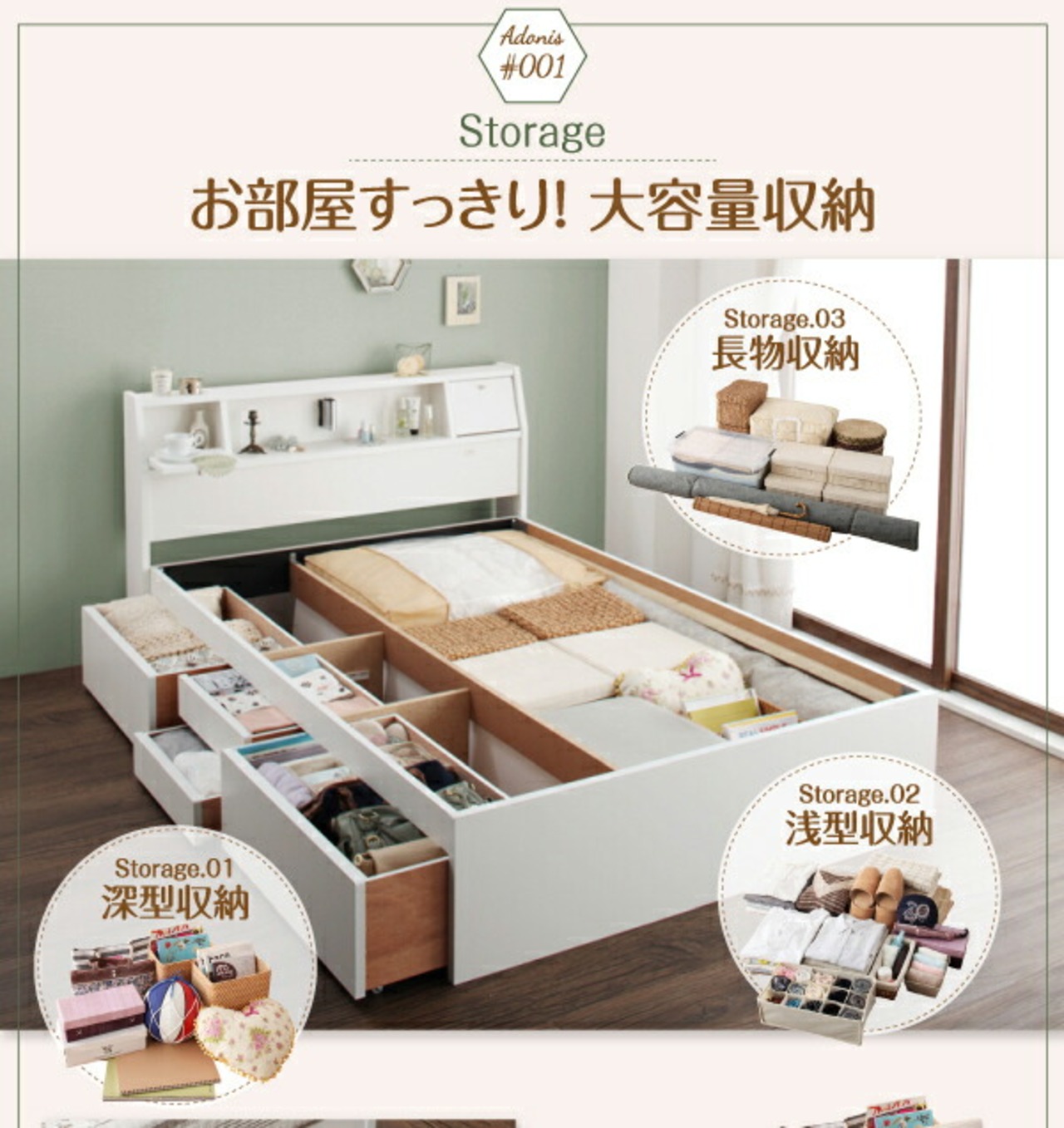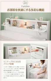フラップ棚・照明・コンセント付多機能チェストベッド 国産ポケットコイルマットレス付き セミダブル