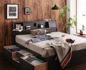 フラップ棚・照明・コンセント付多機能チェストベッド 国産ボンネルコイルマットレス付き ダブル