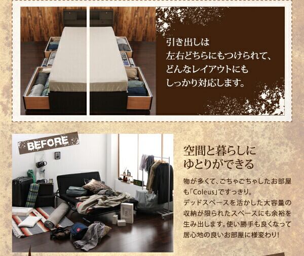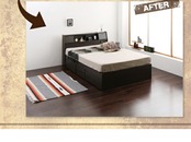 フラップ棚・照明・コンセント付多機能チェストベッド ポケットコイルマットレス付き セミダブル