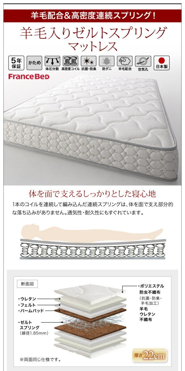 お客様組立 羊毛入りゼルトスプリングマットレス付き 横開き セミダブル 深さラージ