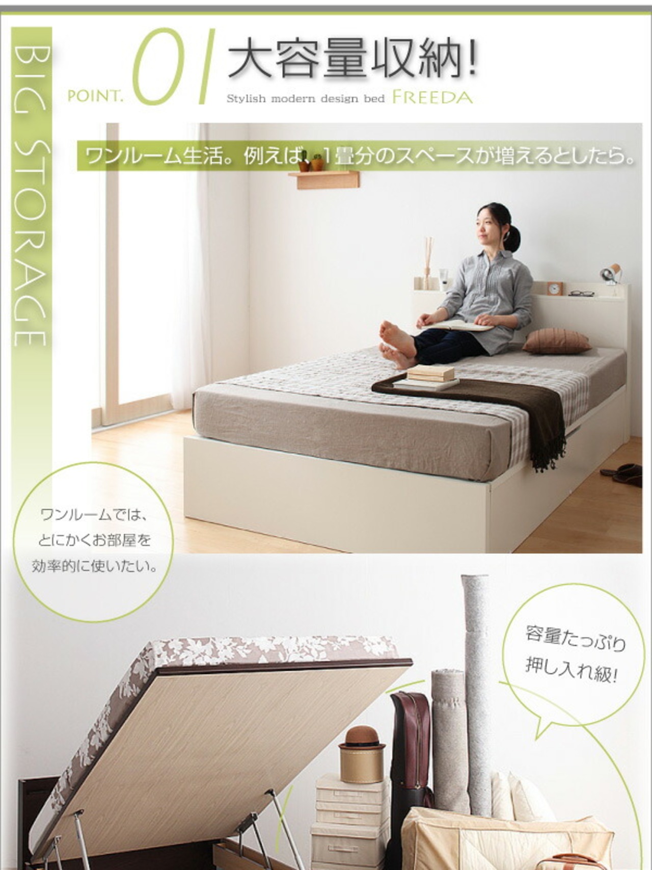 お客様組立 国産跳ね上げ収納ベッド 薄型スタンダードポケットコイルマットレス付き 縦開き シングル 深さラージ