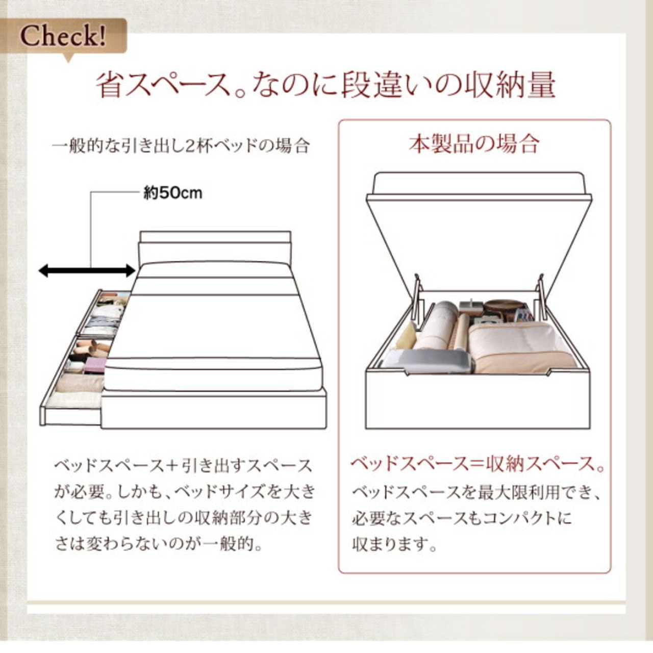 お客様組立 国産跳ね上げ収納ベッド 薄型抗菌国産ポケットコイルマットレス付き 縦開き シングル 深さラージ