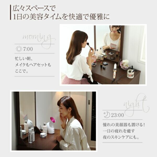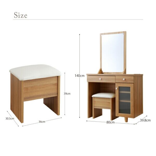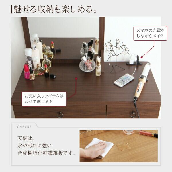 玄関収納 ドレッサー 収納 2口コンセント付き大きな半身鏡のシンプルドレッサー&スツールセット
