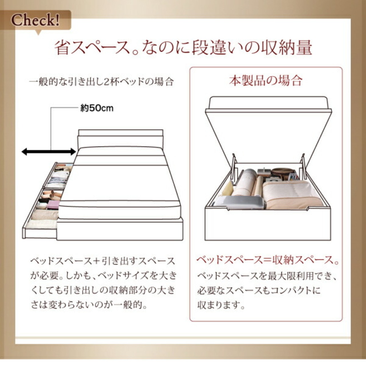 組立設置付 国産跳ね上げ収納ベッド 薄型プレミアムボンネルコイルマットレス付き 横開き シングル 深さグランド