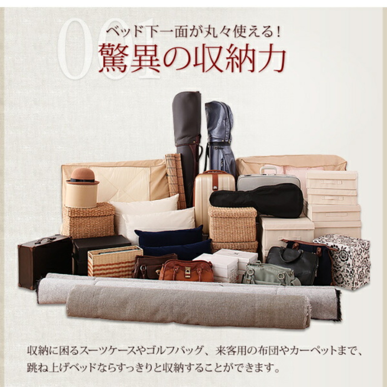 組立設置付 国産跳ね上げ収納ベッド 薄型抗菌国産ポケットコイルマットレス付き 横開き シングル 深さグランド