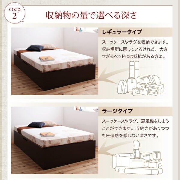 薄型抗菌国産ポケットコイルマットレス付き 横開き シングル 深さグランド 組立設置付