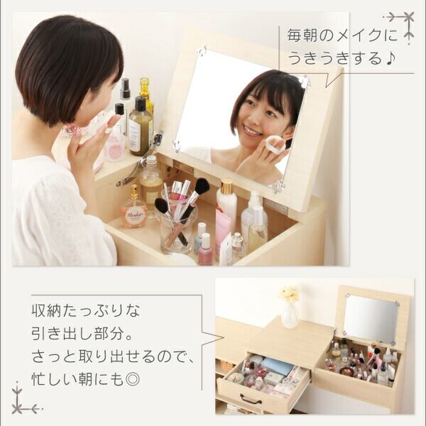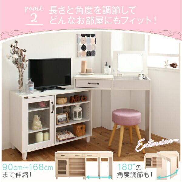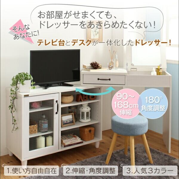玄関収納 ドレッサー 収納 テレビも置けるキャビネット付き伸縮デスクドレッサー ドレッサー・スツールセット