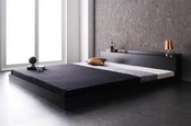 棚・コンセント付きフロアベッド プレミアムポケットコイルマットレス付き ダブル 組立設置付