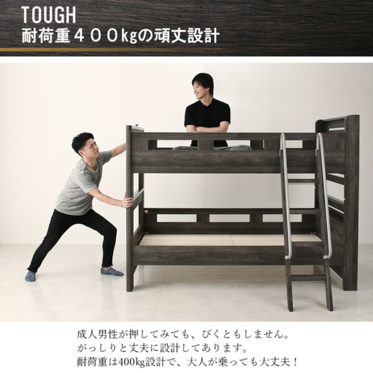 デザイン2段ベッド 薄型軽量ボンネルコイルマットレス付き シングル