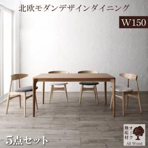 天然木オーク無垢材テーブル北欧モダンデザインダイニング 5点セット(テーブル+チェア4脚) W150