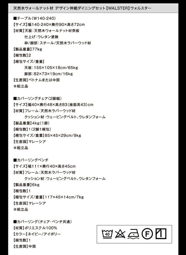 ダイニングテーブル 伸縮 天然木ウォールナット材 デザイン伸縮ダイニングシリーズ ダイニングテーブル単品 W140-240 組立設置付