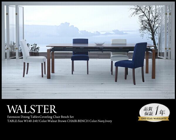 天然木ウォールナット材 デザイン伸縮ダイニングセット 4人 5点セット(テーブル+チェア4脚) W140-240 組立設置付