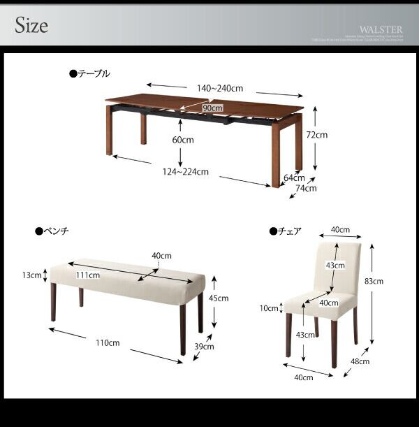 ダイニング7点セット(テーブル+チェア6脚) W140-240 組立設置付