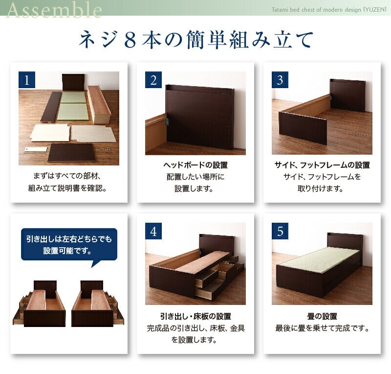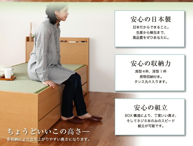 お客様組立 コンセント付き・モダン畳チェストベッド 国産畳 ベッドガードなし セミダブル