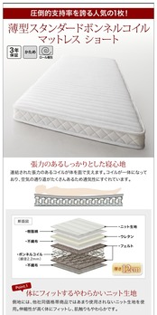 薄型スタンダードボンネルコイルマットレス付き 横開き ヘッド付 シングル ショート丈 深さラージ 組立設置付