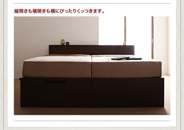 組立設置付 開閉タイプが選べるガス圧式跳ね上げ収納ベッド 薄型抗菌国産ポケットコイルマットレス付き 横開き シングル 深さレギュラー