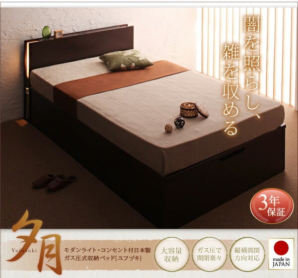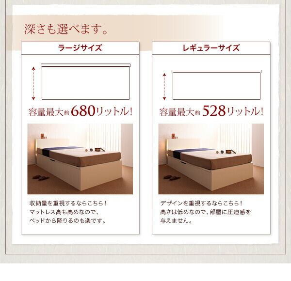 組立設置付 開閉タイプが選べるガス圧式跳ね上げ収納ベッド 薄型抗菌国産ポケットコイルマットレス付き 横開き シングル 深さラージ