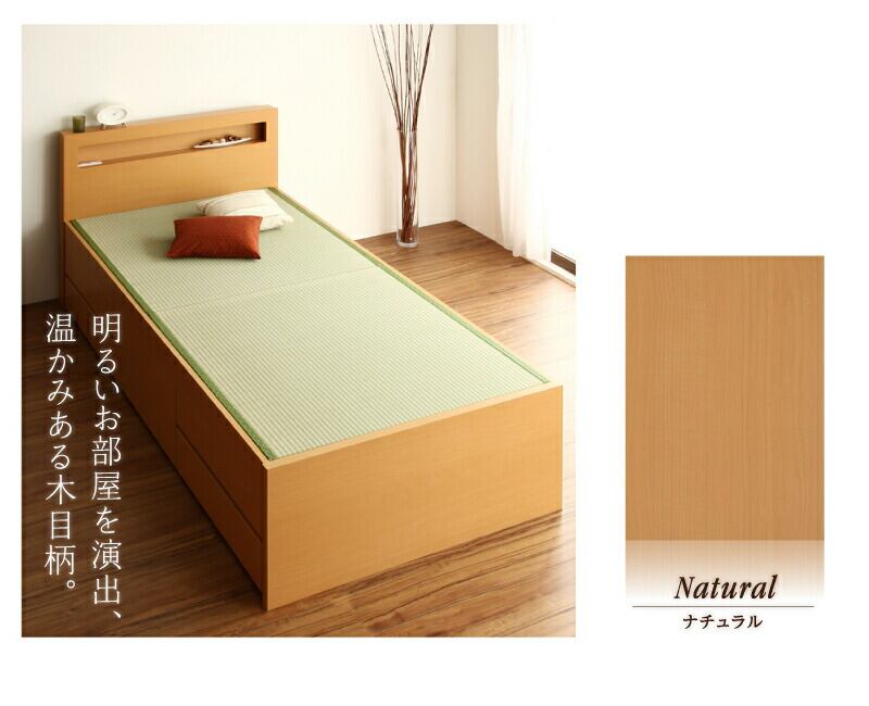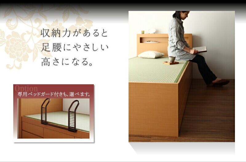 組立設置付 コンセント付き・モダン畳チェストベッド 国産畳 ベッドガードなし シングル